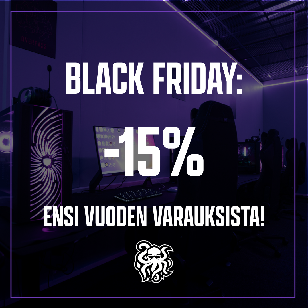 Olemme laajentaneet Black Fridayn mustaksi viikoksi, jotta ehdit suunnitella varauksesi sopimaan ensi vuoden aikatauluusi. Sauna- ja pelitilan varauksissa suosituimpia ovat viikonloppuvaraukset, joita tehdään keskimäärin jopa 4-6 kuukautta etukäteen: miksipä ei siis varata jo ensi kesän laneja, kotimaanmatkaa pimentyviin syysiltoihin, tai piristystä ensi vuoden pikkujouluihin? Näitä alennuksia ei tule joka viikko, joten tätä tilaisuutta ei kannata jättää käyttämättä. 😎